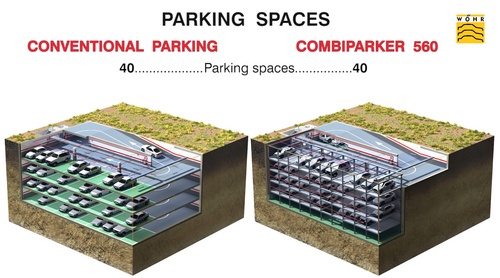 A different way to build a five-level car park with only one ramp, only one access level, only one evacuation level... and the same number of parking spaces.